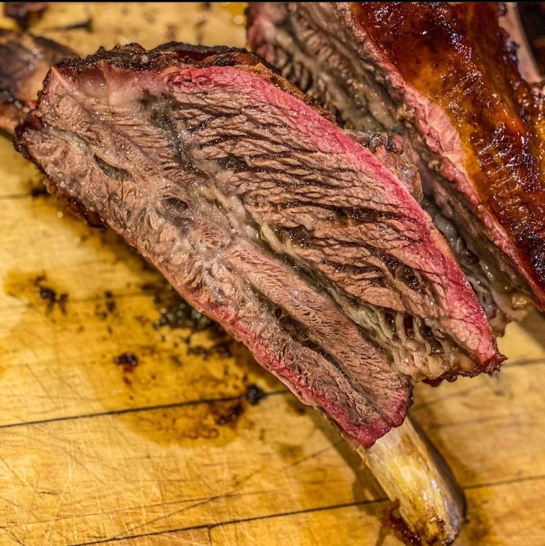 Slice the ribs and savor the deliciousness of your perfectly cooked Monster Beef Ribs.